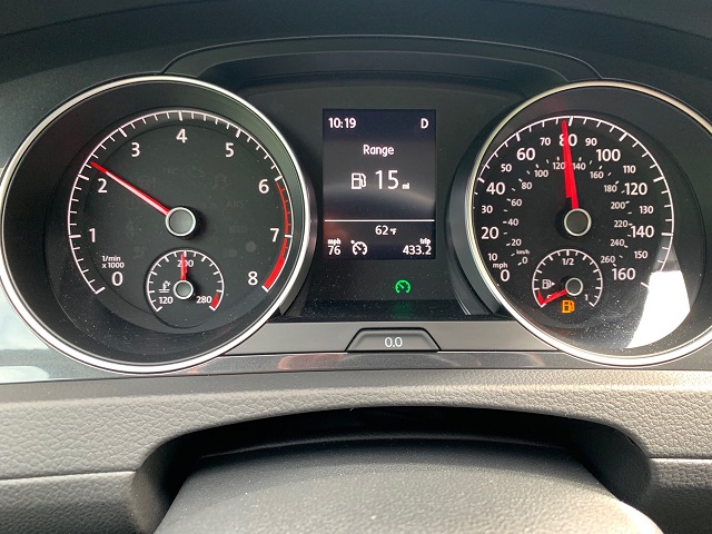 As a moderately priced car, the 2019 Golf had a 6.5-inch infotainment system screen. No navigation, but radio, satellite radio, and Volkswagen’s Car-Net, which let me connect to my iPhone via Apple CarPlay, which I used extensively. That way I had music and my choice of navigation from Apple, Google, or Waze on that screen. I used Apple Maps and Waze; the later to warn me of traffic issue on my regular 100-mile commute. Car-Net includes Android Auto and Mirror Link.