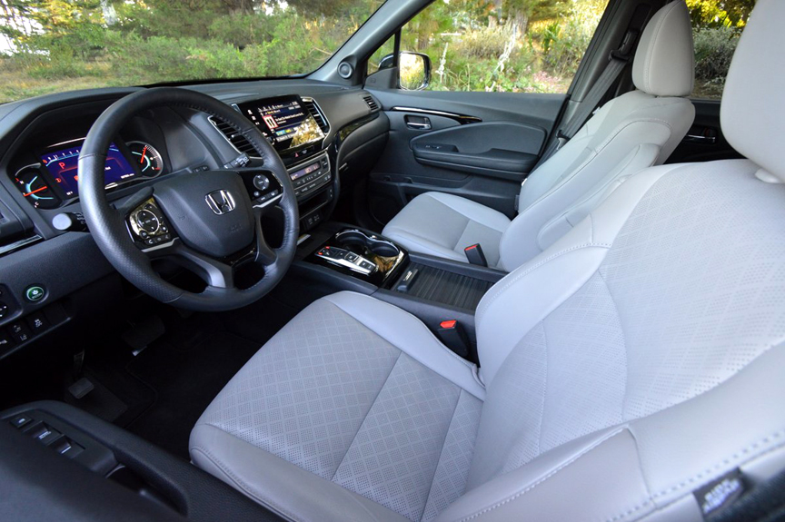 Aside from such practicality, there are myriad performance reasons for selecting the Passport AWD Elite over Honda's other SUV offerings. The main incentive lies under the hood, where a very well endowed V6 feeds 280hp through all 4 wheels. Negotiating the transfer of power is a 9-speed automatic gearbox which can be manually shifted via paddles. With such a comprehensive array of gears, the V6 is never hard put to offer immediate punch. Thanks to its 262lb.-ft. of torque, the 3.5 liter V6 is capable of hauling a 5000 lb. trailer, and Honda equips the Elite with a receiver hitch, plug receptacles and trailer harness wiring. The Elite also boasts a complete suite of Honda Sensing watchdogs like Adaptive Cruise Control, Collision mitigation braking System, Forward Collision Warning, and Lane Departure Warning. Lane Keeping assist can be manually chosen or deleted at will as can Road Departure Mitigation.