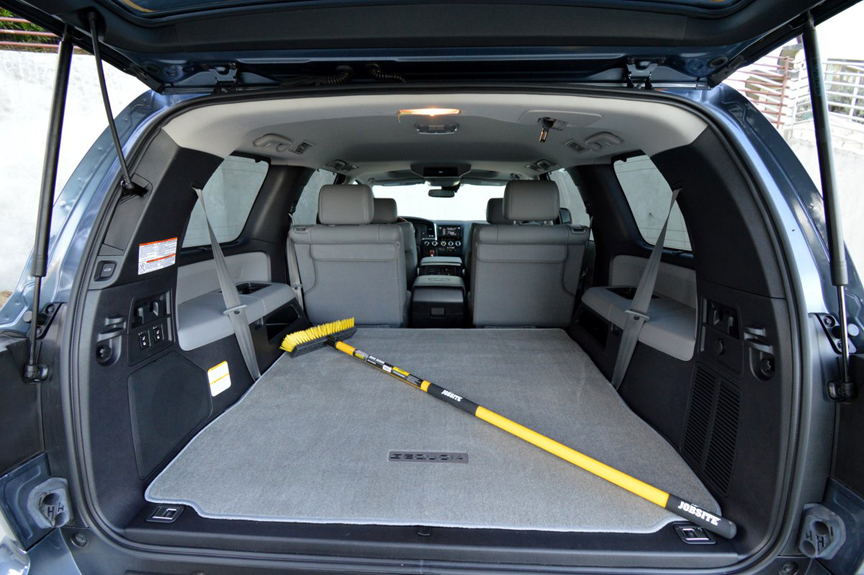 To offset the fuel expense, the Sequoia makes a strong case for mass transportation of both people and cargo. Interior cargo volume is huge, at 61 cubic feet. The Chevy Suburban only beats the