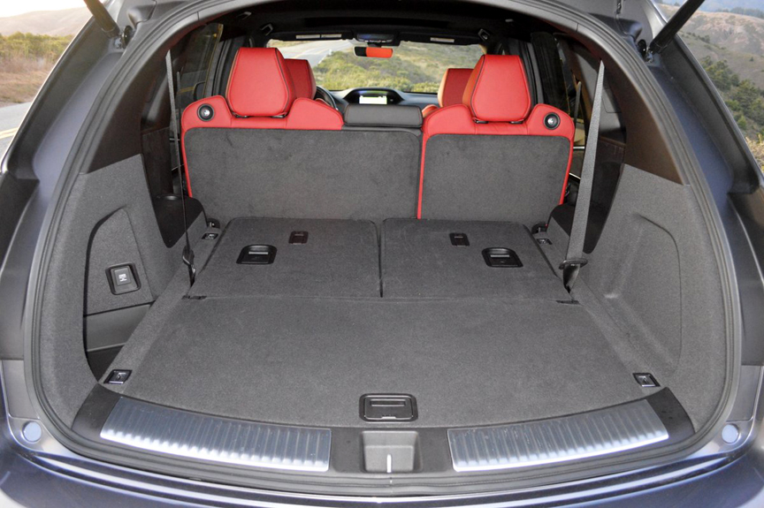 34 cubic feet of space. Acura has devised an ingenious method for disappearing the rear center armrest so the loading floor is instantly cleared of all protuberances in one fell swoop. This meant I could