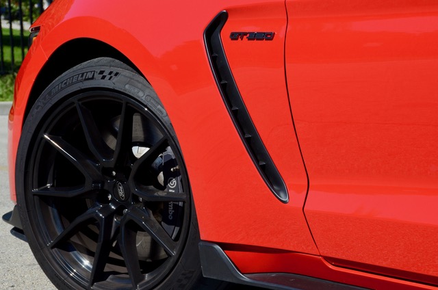 I should mention the tires that come on the GT350 because: rain. Up front are 19-in. x 10.5-in. aluminum alloys fitted with Michelin Pilot Sport Cup 2 295/35ZR19. In the rear are 19-in. x 11.0-in. aluminum alloys fitted with Michelin Pilot Sport Cup 2 305/35ZR19.