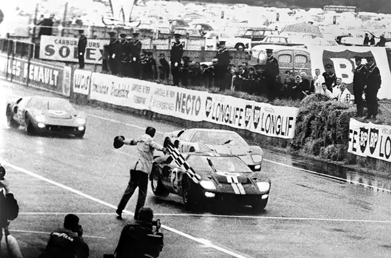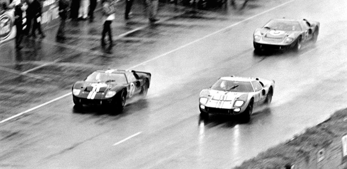 With two hours left in the race, Leo Beebe and Carroll Shelby met to discuss the end of the race. With the Ford cars running 1-2-3, there was little question as to winning the race, but what order should the finish take? If Miles and McLaren continued their personal race, a malfunction such as the one Dan Gurney had at Sebring might occur. The team also discussed having the cars come across in a tie and inquired of the ACO (Le Mans race organizing committee) if that was permitted. The ACO agreed that this was possible and so the drivers (at this time Ken Miles and Bruce McLaren) were told the news at their next pit stop. While neither was thrilled with the decision, both acquiesced with Ken Miles saying “I work for the Ford Motor Company… if they want me to win the race, why, I’ll do it… and if they ask me to jump in a lake, why I’ll guess I will have to do that as well.”