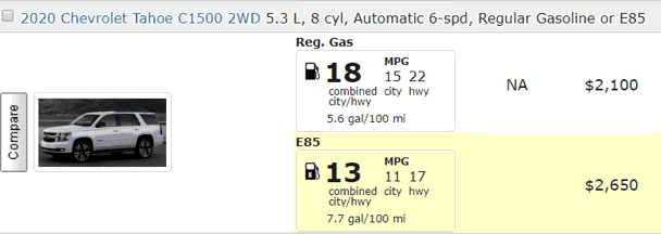 Perhaps the best example I can provide of your ignorance of the ethanol vs. gasoline issue is your inclusion once again of "Monroney" listings to (incorrectly) display the mileage differences between regular gasoline and E85. As I referenced in my first open letter to you, this sort of listing is just a scam. The oil industry misuses the BTU ratings of gasoline and ethanol to portray a (false) superiority of gasoline over ethanol, and this misuse has carried over to use by auto makers to (incorrectly) display mileage comparisons between fuels.