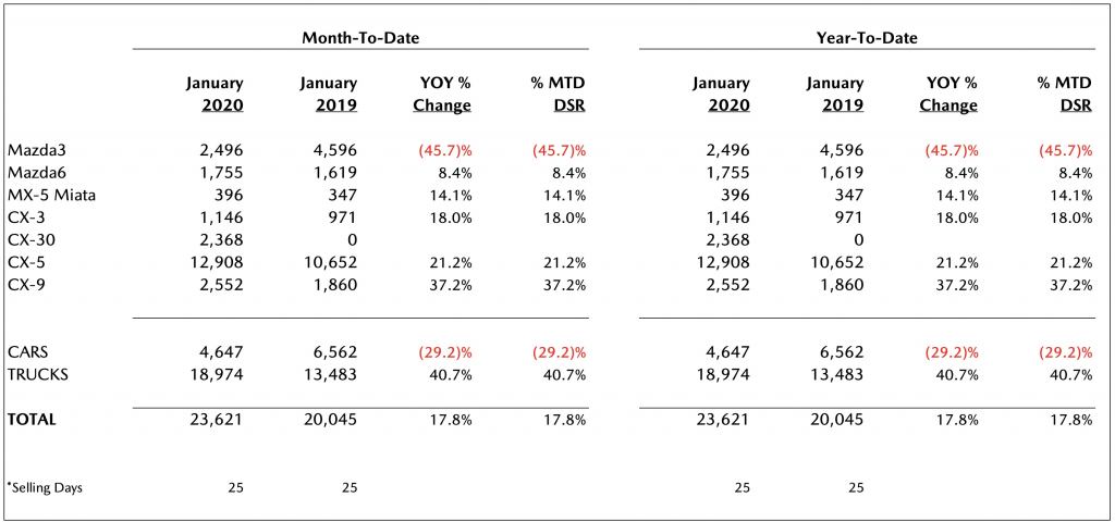 Mazda Reports January 2020 US Sales