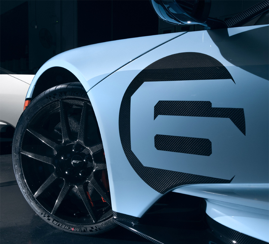 • Two new unique appearance options: Liquid Carbon features GT’s carbon fiber body fully exposed; restyled Gulf Racing heritage livery pays homage to Ford’s 1969 Le Mans win; plus, supercar’s carbon fiber wheels are now available for the first time with heritage livery