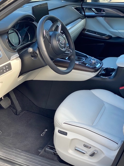 The first thing that the Mazda CX-9 blew me away with was the incredibly luxurious interior. It was so bright and squeeky clean that I would suggest a different color for anyone with children.