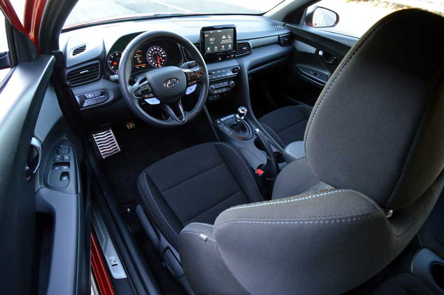 After just one year of competition, the TCR version of the Veloster N street car has racked up an impressive series of successes in road racing. Topping the list is the year-long IMSA championship Brian Herta's Veloster team notched up in the Touring Class of the Michelin Pilot Sport Cup. Tyler Maxson drove a Hyundai Veloster N TCR to the GTX class win in SCCA's 2019 National Championship at Road Atlanta. These are especially notable wins for a new model. Our test N which carried a modest list price of $27,400, had been upgraded with an equally bargain worthy $2,100 Performance Package. This added a set of special 8.0Jx19 inch alloy rims mounting those Pirelli "HN" tires. Additionally, the option group ups horsepower of the twin scroll turbocharged engine from 260hp to 275hp. The differential is upgraded to an "N Corner Carving" unit, the front brakes increase to 13.6 inch front rotors and 12.4 inch rear rotors, and the engine is fitted with a variable exhaust valve system that spits and hisses like a viper on the overrun when you opt for Custom Sport+.