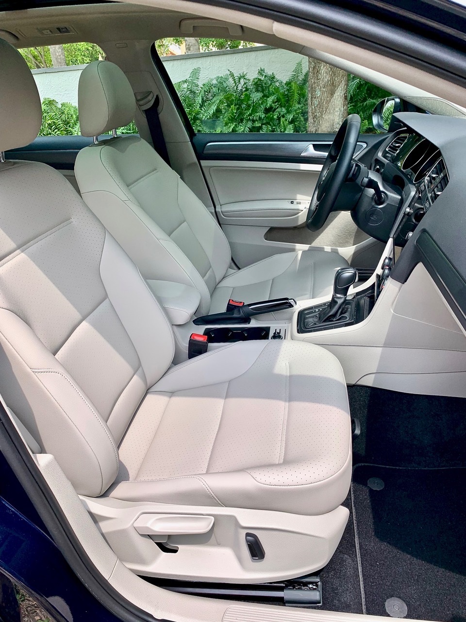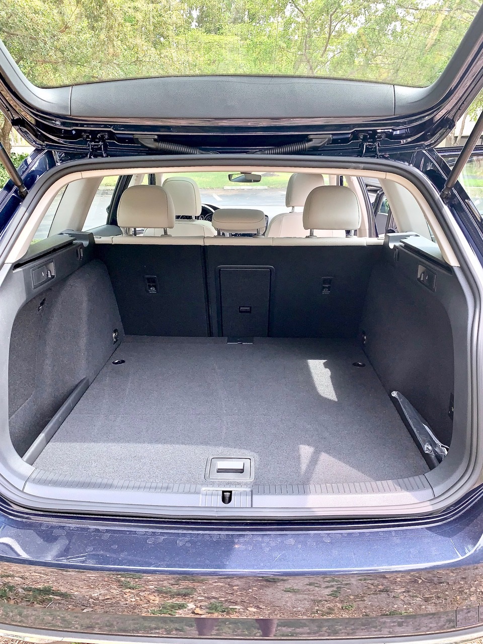 Styling is conservatively sleek and enduring with seating for 4-5, and with an enormous 12-square foot sunroof with a manual sunshade. Once open you can tan. Other touches, like the leather-wrapped steering wheel, promote the feeling that the car—wagon—was designed and built for someone who likes to drive, demands quality and loves an engine that's sufficiently powerful. A clue was inclusion of paddle shifters meant for semi-manual transmission operation. VW calls it Tiptronic and it offers a Sport mode. In congested sun-coast Florida paddle shifters and Sport mode are more suggestive than required (but fun!). Well, sometimes I kept in a lower gear rather than let the transmission upshift into eighth gear; it provided more control and faster response. With that 8-speed transmission (FWD only, AWD models have a different transmission), 60-mph is 1,500 rpm for optimum fuel economy, which is EPA-rated at 37-highway.