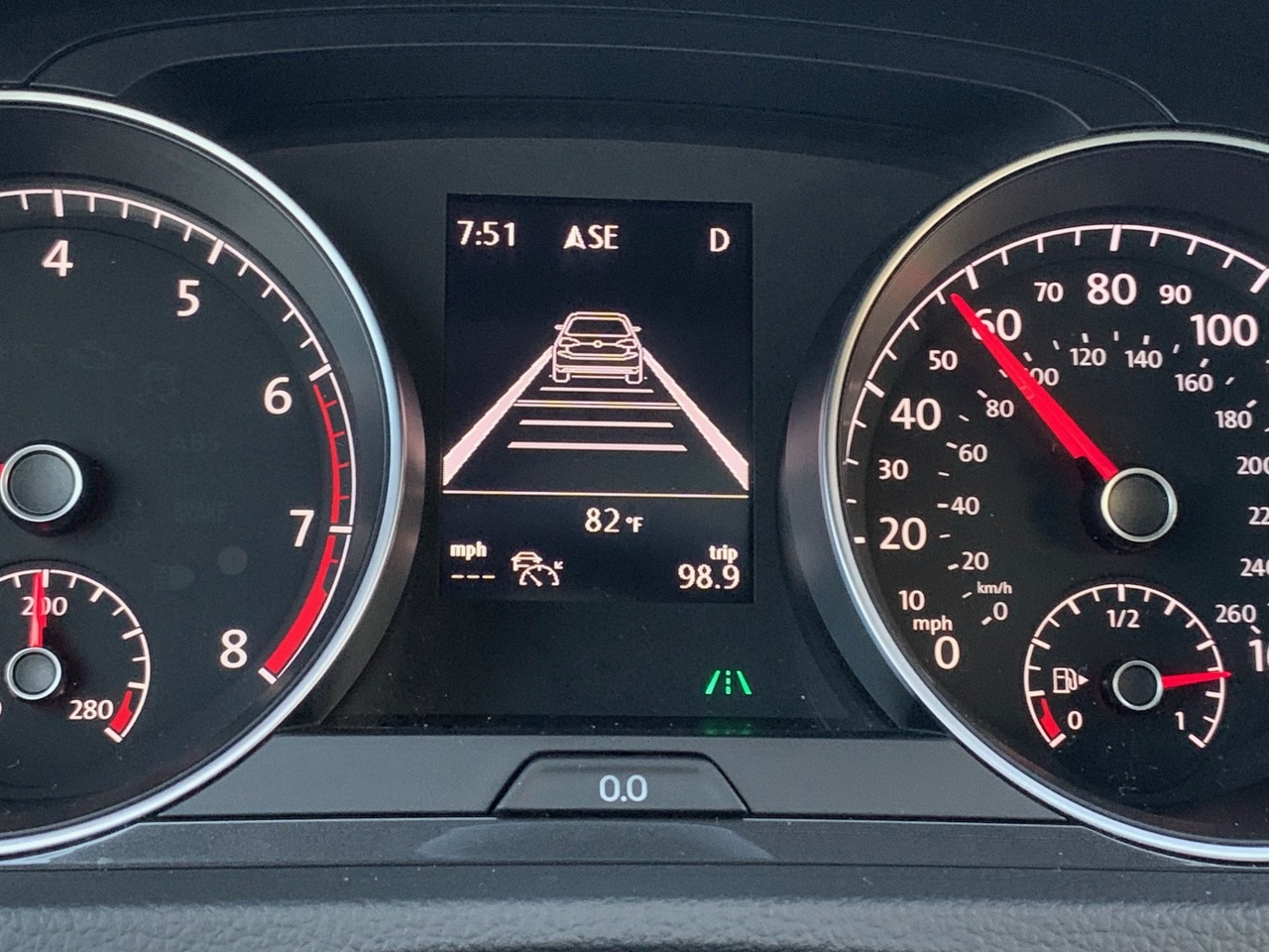 I switched on Lane Keeping, first not letting it provide assistance. Then, of course, I had to test its capabilities. Letting the car drift towards a lane marker, steering pushed me back towards the center, unless the turn signal was on. If hands are off for several seconds, a pictograph and alert reminds that you should have eyes on the road, not an iPhone or media channel.
