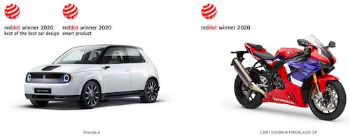 Honda e and CBR1000RR-R FIREBLADE win Design Awards in the "Red Dot Award: Product Design 2020"