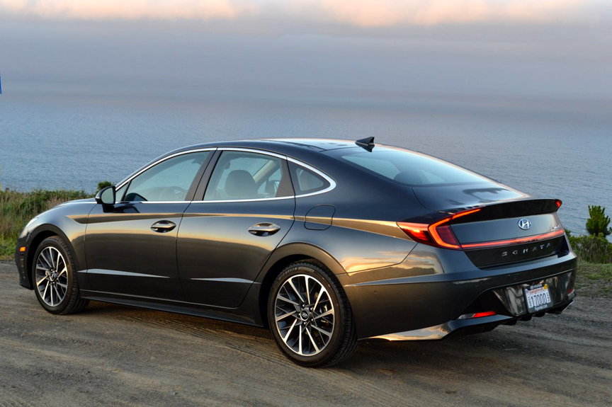 Of course, even if you're not a computer freak you can still just hop in the Sonata Limited and drive it without so much as reading a paragraph, touching a button or tweaking a setting. The shape of the new Sonata is bewitchingly beautiful, especially in profile. From the side, upper and lower indentations impart a sleek grace that was markedly absent on the previous Sonata. The same stylistic innovation holds true for the striking twin chrome strips that run all the way from the top of the headlights to the base of the A-pillars. This re-imagined Sonata is a visual jewel.