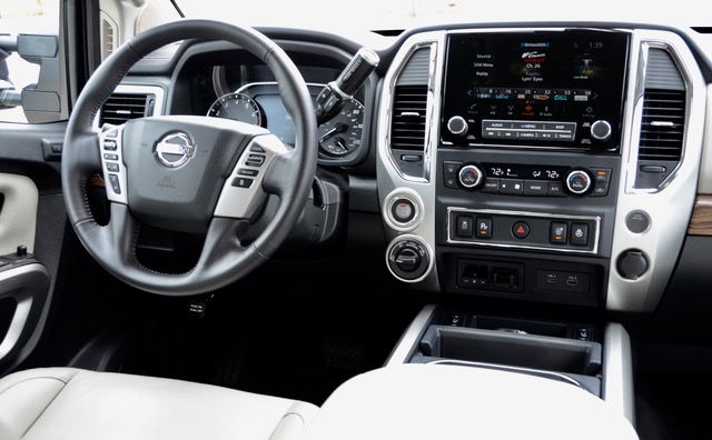 The cabin is where you spend all your time and Nissan has made the interior of the Titan first-class. Work truck during the day, but at night or on weekends the Titan will chauffeur you in style to any social. The 5-seat SL I drove proved plenty comfortable for myself and my wife while driving around for nothing more than routine household needs.