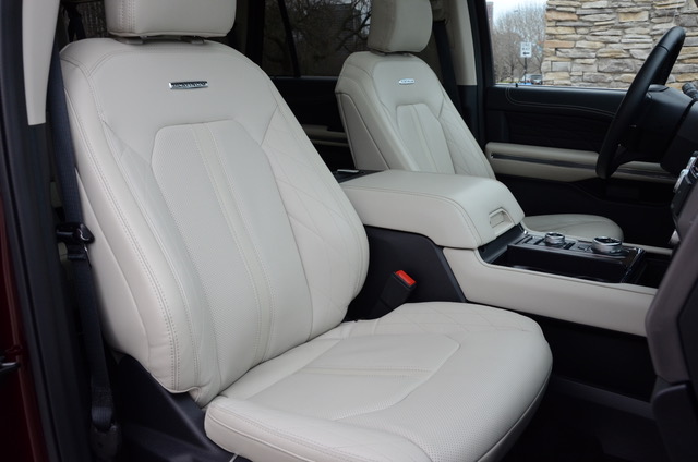 Climbing up and into the Expedition was made easier with power-deployable running boards. My wife especially liked them. Once inside you have a command view of the road. Adjusting the driving position is all done by power—the driver’s seat, the steering column, the pedal position and the outside mirrors. How easy!