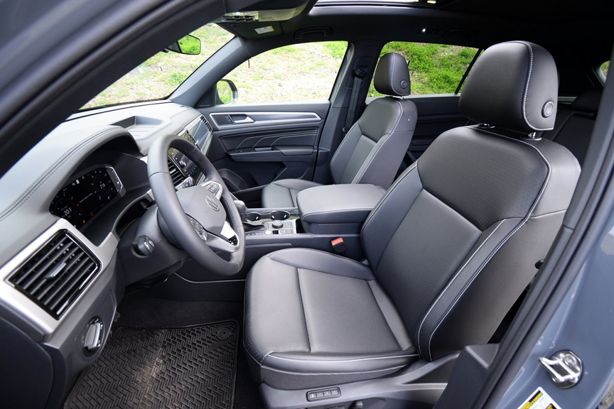 Since it's hooked up to an 8-speed automatic gearbox, the turbo 4 provides decent acceleration for passing and freeway merging. But unless you happen to select the correct gear ratio for tight overtaking maneuvers, this drivetrain struggles to earn a passing grade. That's because the Atlas weighs in at 4,670lbs, which makes its power-to-weight ratio 19.87lb/hp. If you upgrade to the 276hp V6, you improve that ratio substantially, to 16.92lb/hp. So I would definitely opt for the slightly more expensive V6. Although VW rates the tow capacity of either Atlas variant at 5,000lbs, if you're hauling a trailer over the Sierras, you'll definitely want that V6.