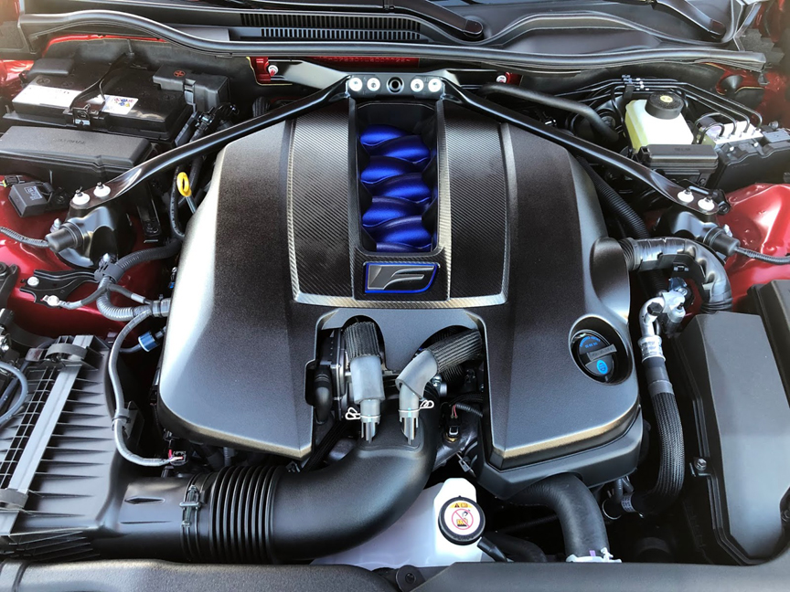 Now in it’s sixth model year, updates continue. Engine air intake routing was revised for a 5 horsepower and 6 ft lbs torque increase bringing the torque total to 395 at 4800rpm. The intake runners look great in blue as well, but shouldn’t they match the body color? Revised rear bushings further enhance the already responsive handling. Also the headlights, taillights and grill have been revised. Despite some weight reduction, Lexus lists it a still hefty 3904lbs.
