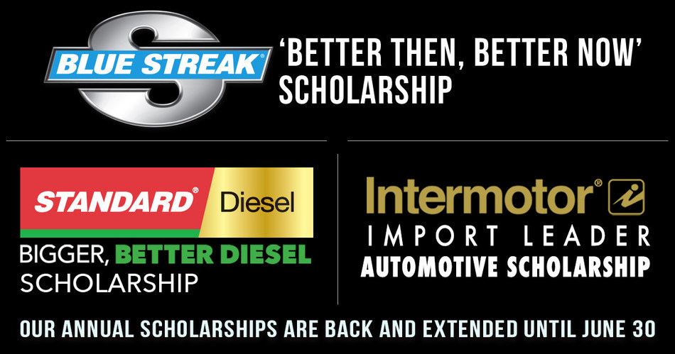 The Blue Streak® 'Stronger Than Ever,' Standard® 'Bigger, Better Diesel,' and Intermotor® 'Import Leader' automotive Scholarships, awarding 12 students $5,000 each will now run through June 30, 2020.