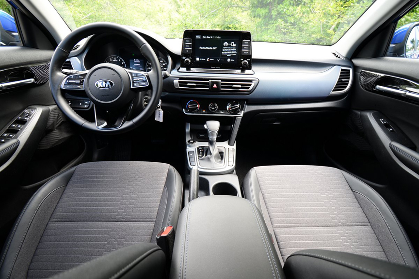 Attribute that responsiveness to the 1.6-liter turbo motor which produces 175hp and 195lb.-ft. of torque. Since the Seltos S weighs just 3,271lbs., its power-to-weight ratio of 18.6lb/hp puts it at a distinct advantage compared to competitors’ small SUVs. The acceleration times prove the point, with the turbo Seltos cutting a very respectable quarter mile run of 15.3 seconds at 91mph, and a 0-60 time of just 6.6 seconds. The fact that Kia equips the Turbo Seltos S with a 7-speed double clutch automatic transmission further invigorates the driving experience. Kia calls this gearbox a “Quick-Shift DCT” and indeed it’s so easy to swap cogs manually that you’ll find your driving experience in this Seltos to be unexpectedly rewarding.