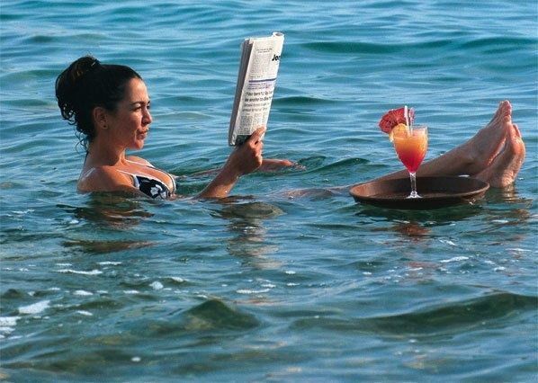 Nonetheless, a dip in the Dead Sea is a de rigueur Israel experience. Those who imagine the naturally chemicals-rich water will be vaguely more buoyant--it has a 25-percent salt content versus the Mediterranean's 3.5--are in for a rude shock. It's impossible to walk more than chest-high into the sulfurous lake before your feet come off the bottom; even forcing yourself into the water by gripping a handrail will only achieve chin-high immersion. And it's a good thing: put a drop of Dead Sea water on the tip of your tongue and you'll swear you've swallowed Drano.