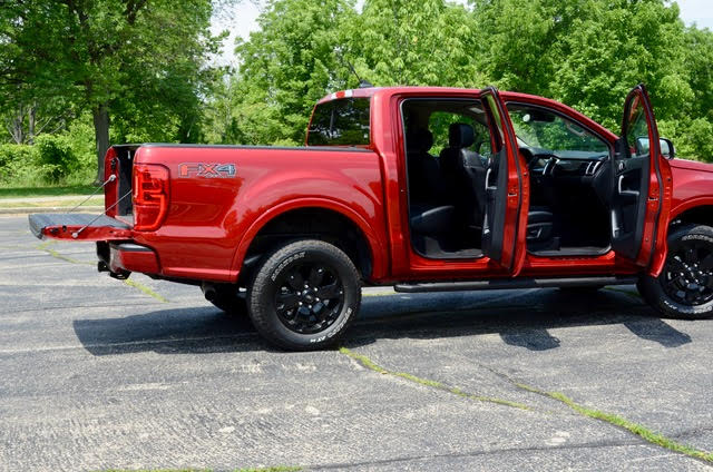 My Rapid Red Metallic Ranger also had the Black Appearance Package which included running boards that make for easier entry and exit, especially for the ladies. A hard folding tonneau covered the bed.