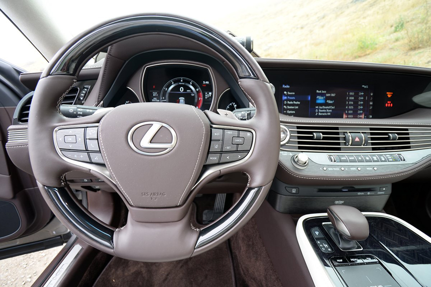 Our test LS 500, like all members of the LS family, depends on a twin turbocharged V6 for motive power. This lively engine couples to a 10-speed automatic transmission for power distribution. The engine produces 416hp and 442lb.-ft. of torque. Although those output numbers look impressive on paper, the V6 Turbo LS fails to match its V8 predecessor for immediate response to throttle input. Nor does its engine issue the same decisive sound track as that of its predecessor. Because peak torque occurs at just 1,600rpm, you can depend on decent acceleration in almost any gear at any road speed. But if you choose to play the direct shift automatic like a musical instrument, this mechanism is game to participate in the fun. Just be sure to slot the somewhat confusing console shift lever into the proper gate before you play with the paddles at the steering wheel.