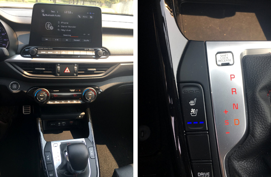 Under the hood sits a DOHC, 1.4-liter, 4-cylinder turbocharged engine that puts out 201 hp and 195 lb-ft of torque. A 6-speed manual transmission or a 7-speed dual clutch automatic transmission are available. Purists will opt for the manual, the test Forte GT had the automatic. Heretic that I am I’d take the automatic. If you want to shift just put it in “Sport” mode and use the paddle shifters.