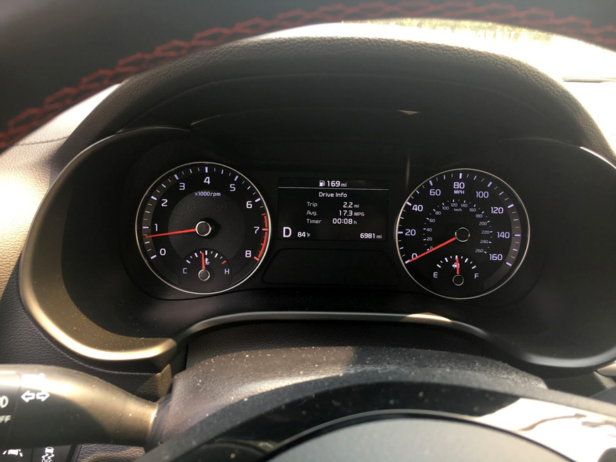 Brakes are something I take seriously, stopping is more important than going in my book. The Forte GT gets it done – 12.0” rotors in front and 10.3” rear. They felt great; firm and easy to modulate (not that you need to modulate in a panic stop anymore because the anti-lock brakes do the job).