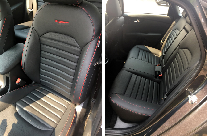 Inside looked decidedly upscale sporty to me. Some might criticize the front seats because they aren’t of the body hugging race car design. Me? I’m of an age where I appreciate a seat that doesn’t put my butt to sleep on a long drive. I suppose that if I were racing the Forte GT I might like better side bolstering but out here in the real world getting in and out should not require hoisting your butt up and over the bolsters.