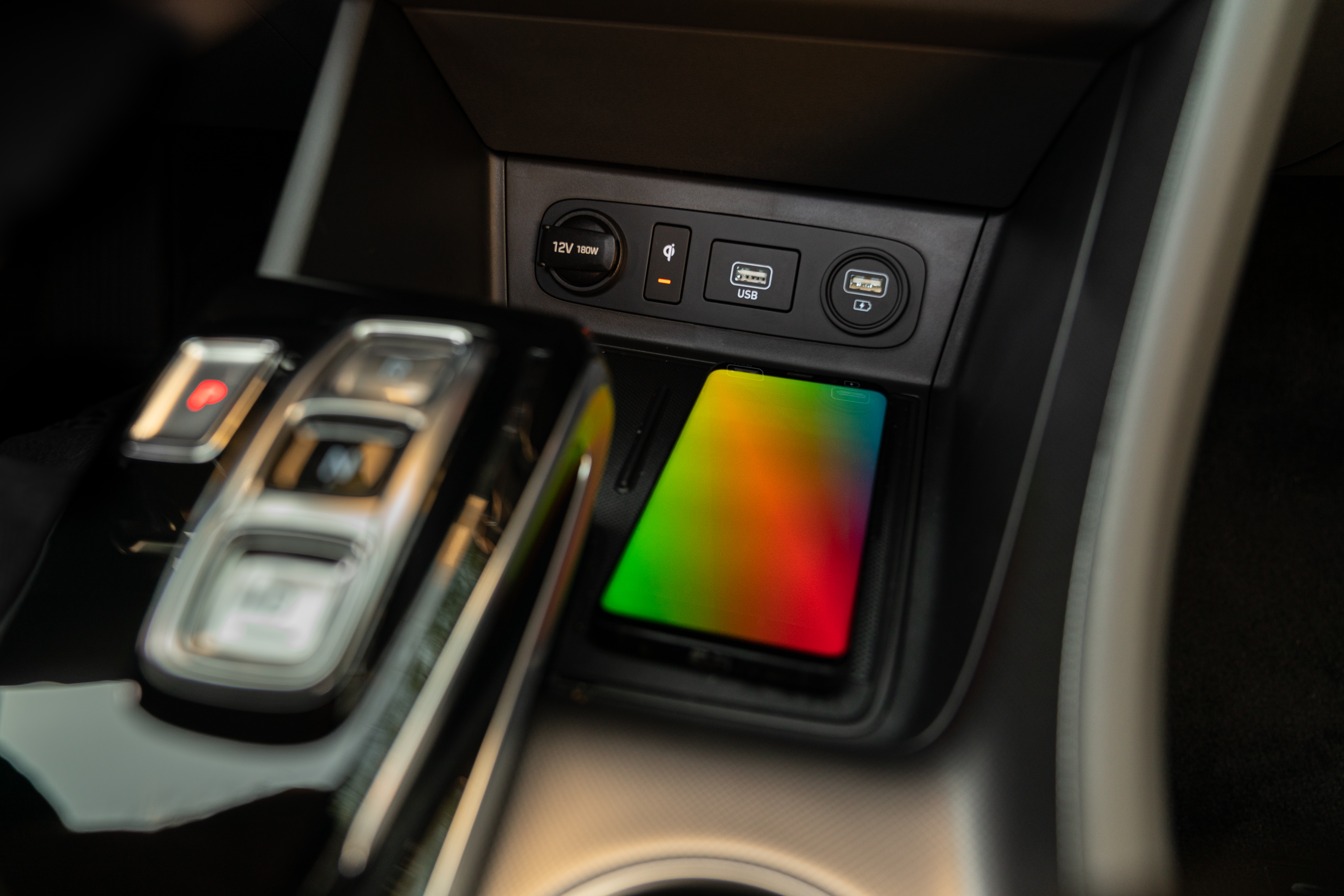 It's got PAK, man. PAK, or phone as key lets an Android smartphone can be a key as well; it can unlock the door when held against the handle, and authenticate the driver when the phone is placed in the center console Qi wireless cradle.