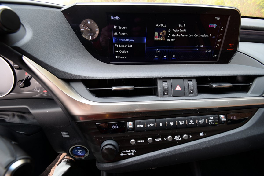 The base price of the ES 300h is $41,760, most reasonable for entry into the vaunted Lexus family of fine automobiles. However, in order to differentiate the hybrid from a Toyota Camry, you will need to ante up an additional $10,475 for 13 separate options that will elevate the base version into a representative entry level Lexus. The most expensive of these additions is the $2,900 Navigation/Mark Levinson Audio Package. This grab bag of goodies includes a stellar 17 speaker surround sound audio system with 1800 watts of firepower. We particularly enjoyed the ability to replay the last song heard on SiriusXM over again. The Navigation component adds a 12.3-inch color multi-media display atop the dash, plus 3 years of Lexus Enform, a dynamic navigation assistant that responds to voice command. Lexus limits Dynamic Voice Command to “10 years of Ownership,” apparently concluding that either you or the car will expire before that deadline is reached.
