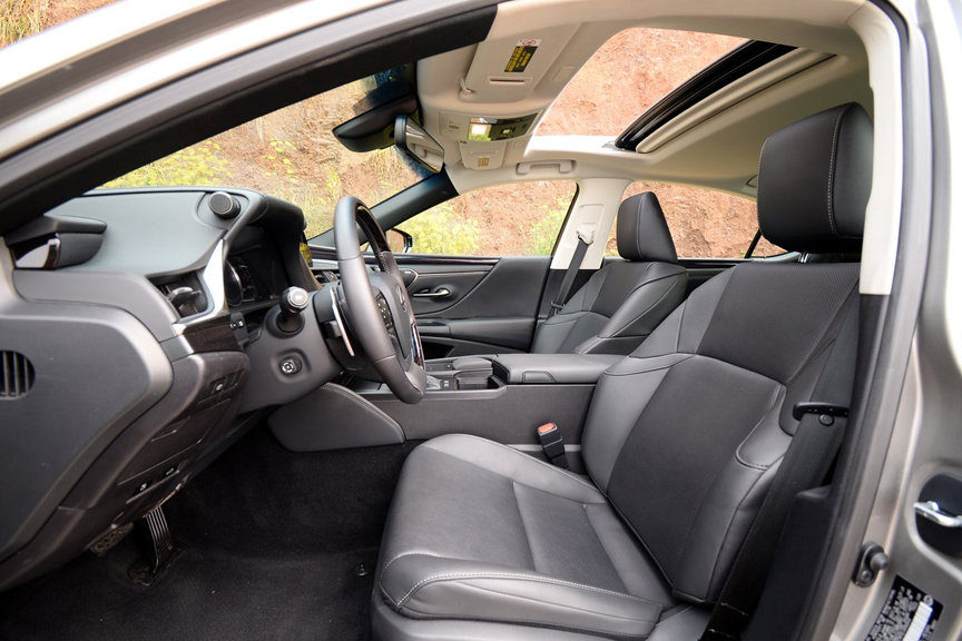 The second most expensive option was $1,515 for triple beam LED headlights. At $1,375, the Premium Package provides all the extra touches you would expect from a Lexus to begin with, like heated and ventilated front seats, folding outside mirrors, tilt/telescope steering wheel, rain sensing wipers, and seat position memory switch. But really, should you have to pay $1,065 extra for a safety suite (Blind Spot Monitor, Rear Cross Traffic Alert, Intuitive Parking Assist with Auto Braking) that so many other makers consider part of their basic package today? We did appreciate the reasonable upcharge for the handsome 18-inch split 10-spoke alloy wheels ($770) which were shod on our test car with Bridgestone Turanza EL 440 radials (235/45R18) with a long-life wear rating of TW 480. You would have a hard time duplicating these alloys and tires for twice the price at your local tire retailer. And, yes, they worked quite well at keeping the ES 300h pinned to the apexes of the very winding road that leads to my house.