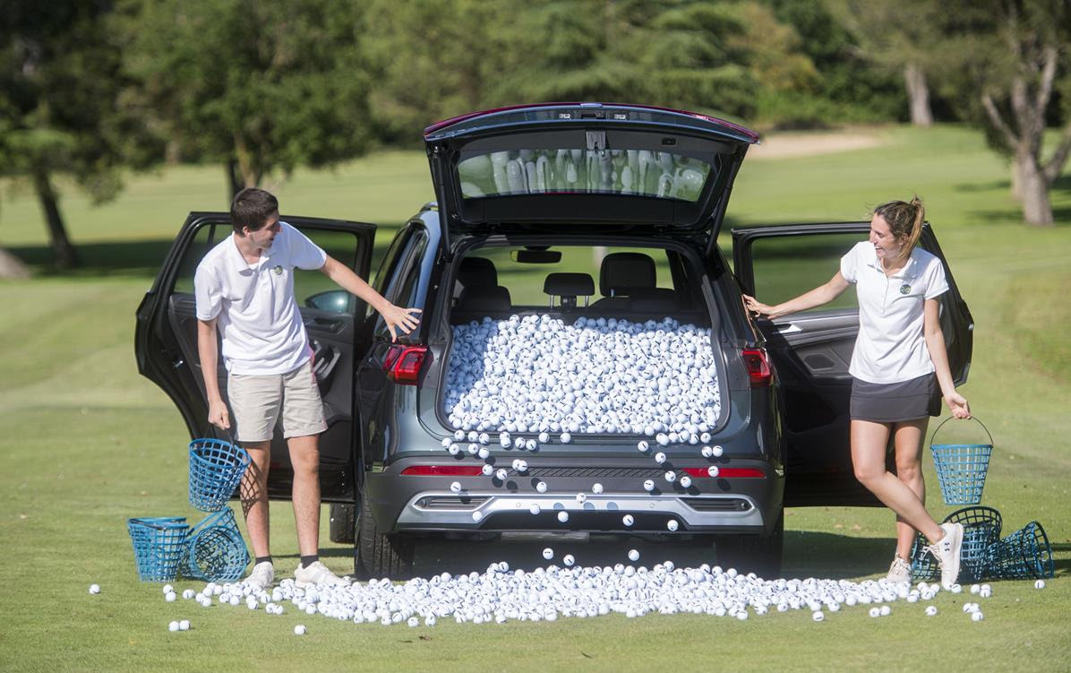 How many golf balls fit in the boot of a Tarraco? If a golf ball has a diameter of 4.27 centimetres and a volume of 40,679 cm3, and the boot of a five-seater Tarraco has a capacity of 760 litres, how many will it hold? We found out with the help of two promising young golfers who collaborated in this special filling of the luggage compartment.