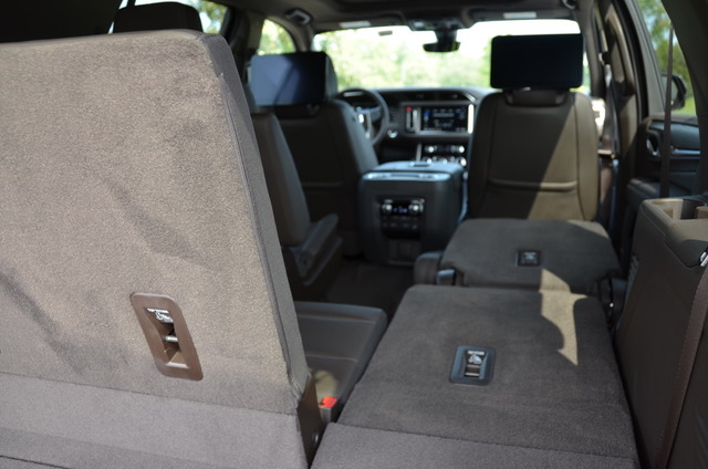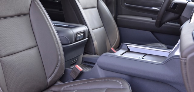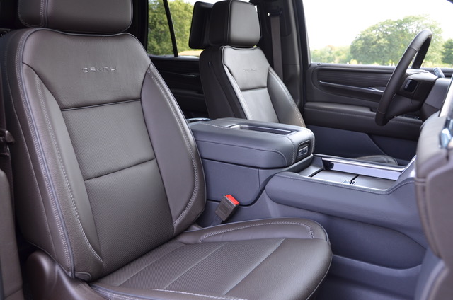 Climbing up into my Yukon Denali “car for a day” with aid of the helpful deployable running boards the cavernousness of the interior is realized immediately. The top of the IP sits high. I like to sit low. I easily found a happy medium for my 5ft 10 in body with good outward sight lines. An NFL lineman should be very comfortable.