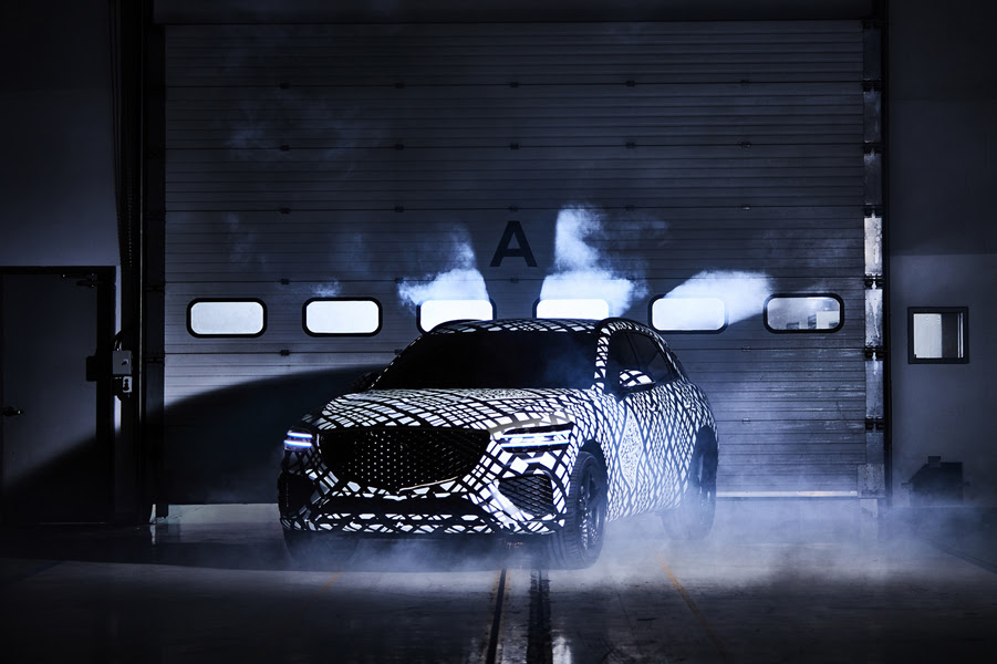 While specific details are presently hidden by the bespoke G-Matrix camouflage pattern, the continued evolution of Genesis’ signature “Athletic Elegance” design language is noticeable.