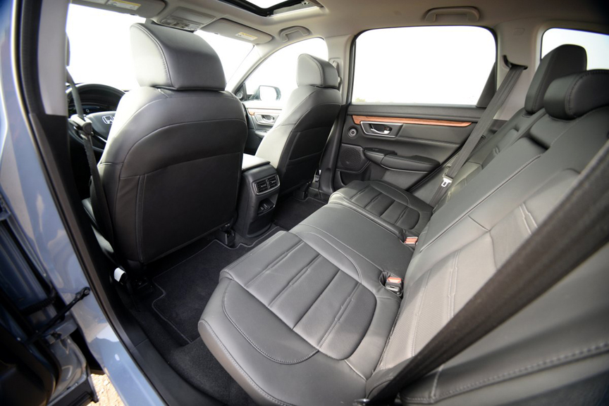 We were impressed with the ease of converting the rear section of the CR-V from passenger carrier to transport wagon. The spacious second row bench seat folds flat with the simple lift of a lever for each side of the 60/40 split seatback. Remove the Touring model's cargo area cover, and you have instantly created 36 cubic feet of cargo volume. We utilized that space to tote a mountain bike from one riding site to another for the week we spent with the Hybrid. The Touring's standard hands-free access power tailgate, with convenient operating buttons on both the exterior of the door as well as the outside edge of the lower dash panel, made loading and unloading the bike easier than any similar SUV in recent memory.