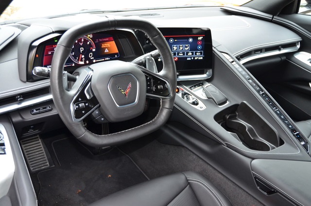 The 495hp of the LT2 engine gets to the high performance tires through a Tremec 8- speed dual-clutch transmission. Upshifts are lightening fast with a commensurate pop from the exhaust. Software programming dictates downshifts. Select the “M” button on the gear selector and manual shift paddles engage you with the powertrain. I used the M-button a lot.