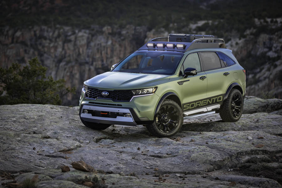 Since the arrival of the award-winning Telluride last year and the head-turning Seltos in early 2020, Kia Motors America (KMA) has had its sights on building a robust and reimagined SUV line-up. As the next step in this capability-focused product strategy, the all-new 2021 Sorento is poised to bring customers a new level of trail-ready toughness not yet seen from the brand. To celebrate this rugged personality, KMA unveiled a pair of custom-built Sorento SUVs – the Yosemite Edition and the Zion Edition – during the brand’s virtual national dealer meeting this week. The two wilderness-themed SUVs build upon the production Sorento X-Line model, a variant that highlights off-road prowess with unique 20-inch wheels, increased ride height to 8.3-in., improved approach/departure angles, more advanced AWD with snow-mode, and a more robust roof rack than the outgoing Sorento.
