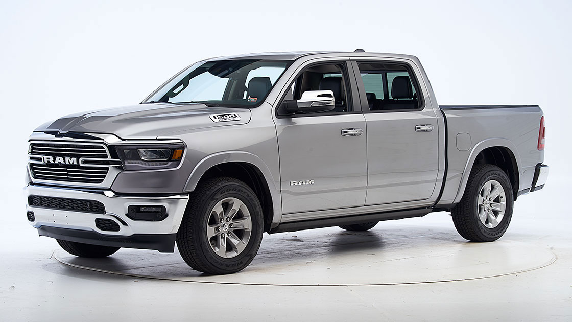 The Ram falls short of qualifying for the higher-tier Top Safety Pick+ award, which requires good- or acceptable-rated headlights on all trims, because three out of the four available headlight packages earn marginal scores. The curve-adaptive LED projectors that come with the Laramie Longhorn, Limited and TRX trims earn a good rating. Those trims also have high-beam assist, which automatically switch between high beams and low beams, depending on the presence of other vehicles.