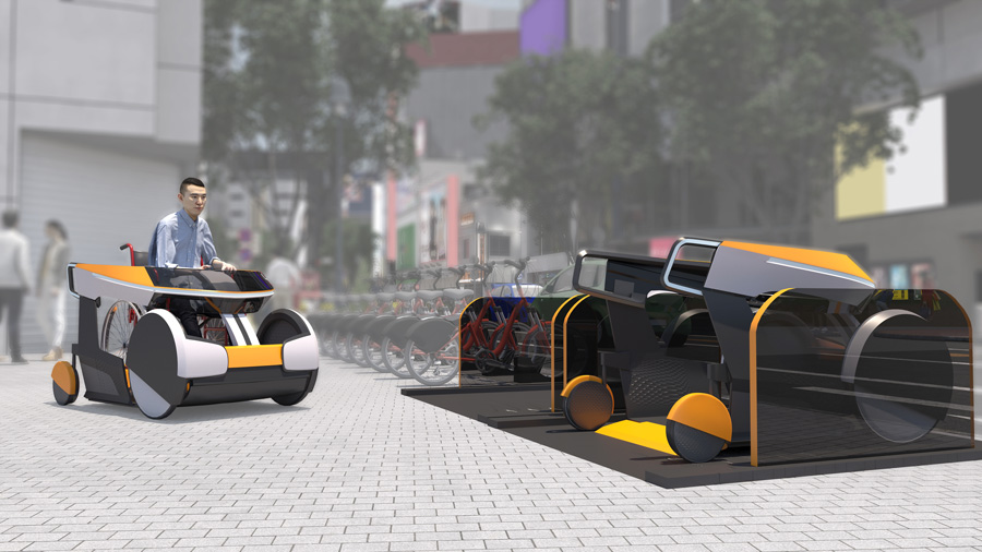 Italdesign (Italy)―a wheel-on semi-autonomous electric device that provides ride sharing for wheelchair users. It is primarily designed for micro mobility and is usable on a variety of surfaces.