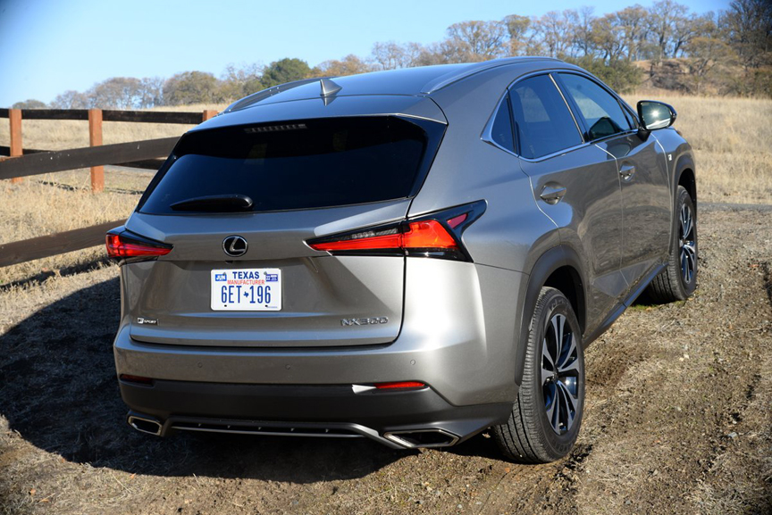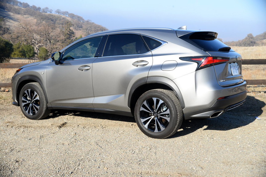 While I was shooting photos for this road test, I posed the front-wheel-drive NX on a steeply angled section of dirt road for some dramatic looking off-road shots. After all, this Lexus is marketed as a sports utility vehicle, capable of performing with the kind of athleticism that definition implies. Still, this patch of dirt was fairly steep, and I had my doubts whether the NX could drive itself up the remainder of the incline when I was done taking pictures. The answer was no. The front driven wheels, shod with street treaded Yokohama Geolander G91 radials (225/60R18) immediately started to slip when I punched the throttle, forcing me to back ignominiously down the incline and drive off over flatter ground. However, off-road enthusiasts needn't despair, because Lexus offers a solution to the traction issue experienced by our $39,610 FWD NX. For an extra $1,400, you can buy an all-wheel-drive version of the NX 300 F Sport that lists for $41,010.