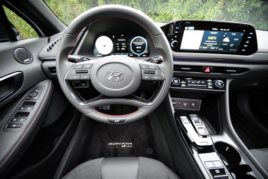Why is Hyundai currently building the world's most desirable, affordable, best looking, fun cars to drive? You can track the corporate rebirth to a couple of key hires the Korean company made about five years ago. To improve the appearance and functionality of their vehicles, they hired stylist Luc Donkerwolke away from his post as VW Group Designer. They followed this coup by poaching Albert Biermann from BMW, where he served as VP of Engineering at BMW M. Donkerwolke transferred the unmistakable design language he developed at VW (for Audi, Lamborghini, and Bentley) to his new projects at Hyundai. Likewise, Biermann relied on his BMW M group technical expertise to improve vehicles from Hyundai, Kia and Genesis. When you combine their expertise with Hyundai's commitment to building affordable products, you have the makings of an automotive revolution. Nothing exemplifies the company's leap from sensible to stellar better than the new-for-2021 N Line version of the Sonata sedan.