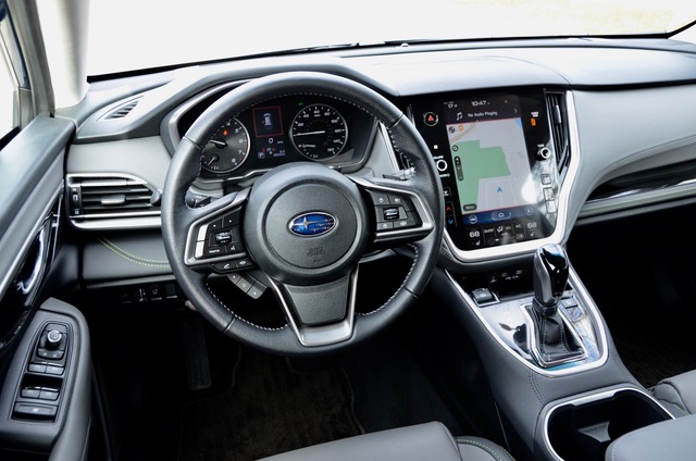 The Outback has a nicely centered and easily reachable 11.6 inch tablet info screen. Seating is supportive and comfortable providing an excellent driving position. There’s good outward visibility with clear sight lines plus there’s plenty of cargo room in the rear behind the seats.