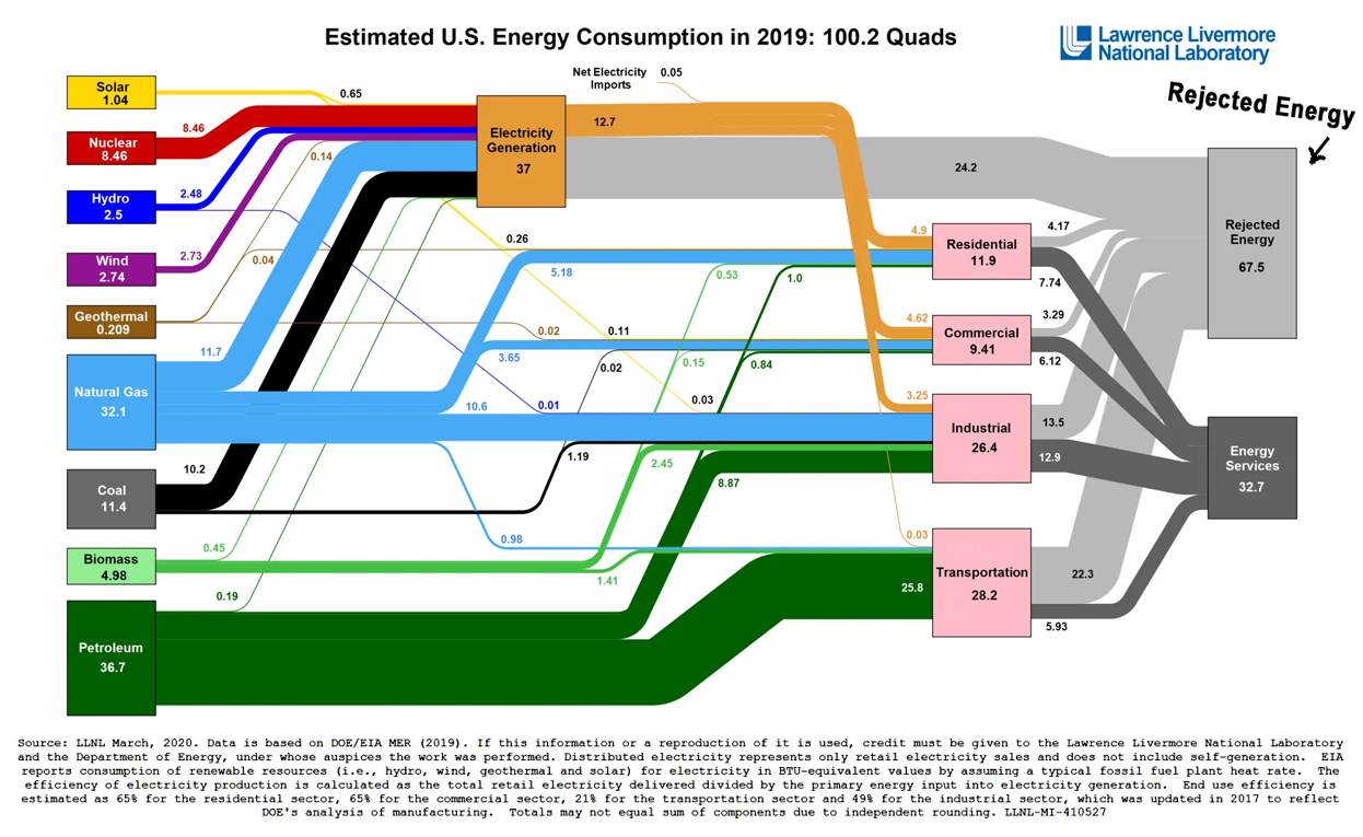 With my latest startup, E-Fuel Corporation, we aggressively pursued to identify the real Climate Change problem and implement the correct solution. During our research we came across an eye-opening Lawrence Livermore National Laboratory and U.S. Department of Energy’s Energy Consumption Rate Chart (shown below) that contained a disturbing category titled "Rejected Energy."