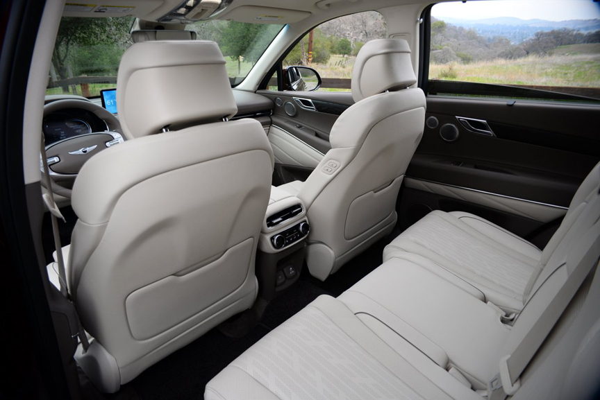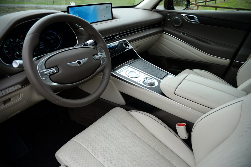The GV80 is unquestionably off-road capable, and we did a modicum of back road travel without giving a second thought to traction loss on gravel. On the freeway, the GV80 is a pleasure to drive, thanks to its excellent road holding and explosive acceleration. However, we found the Smart Cruise Control (SCC) to be rather difficult to operate in conjunction with Highway Driving Assist (HDA). For one thing, the SCC actuation switches on the steering wheel are unclearly labeled as to function, making the system difficult to operate. Secondly, the HDA comes and goes on poorly marked two-lane pavement, so adult supervision is always required. Finally, the Blind Spot Collision Avoidance Assist takes the form of jarring red warning lights prominently displayed in each outside rear view mirror whenever adjacent traffic appears. At night these flashers alarmingly mimic police lights.