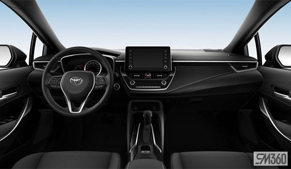 This is the third year of the Corolla Hatchback and the first year of its Nightshade edition. The Nightshade has a black front lower grille surround and a black diffuser, a black rear spoiler, and 18-inch black alloy wheels. In addition there are black heated power outside mirrors with turn signal indicators, along with full-speed adaptive cruise control and lane tracing assist.