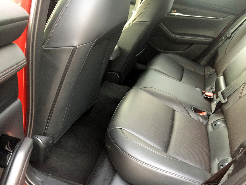 The rear seat is adequate for two adults as long as the driver and front seat passenger aren't too tall. Mazda says there is almost a yard of legroom in the back but I suspect that is with the front seat scooted all the way forward. The Mazda3 is no different in this aspect than most small cars.