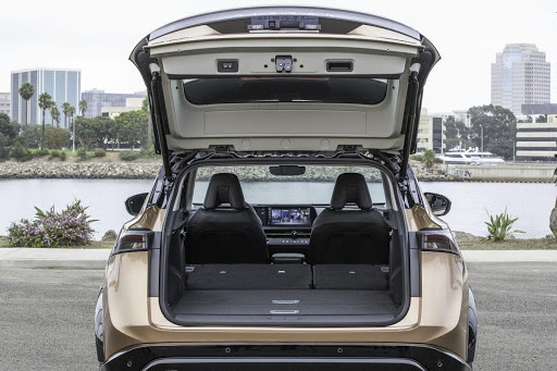Nissan plans both 2WD and AWD models for the 2-row, 5-passenger vehicle with the 2WD, plus the largest battery pack, having an approximate range of 300 miles-per-charge. Two batteries are planned, 65kWh and 90kWh, each adaptable to Level 1, Level 2 and Level 3 charging. The AWD e-4ORCE will offer less range, but better performance, particularly in snow states. Power output varies from 160 kW to 290 kW and torque output is similar, 221 lb-ft.—443 lb-ft.