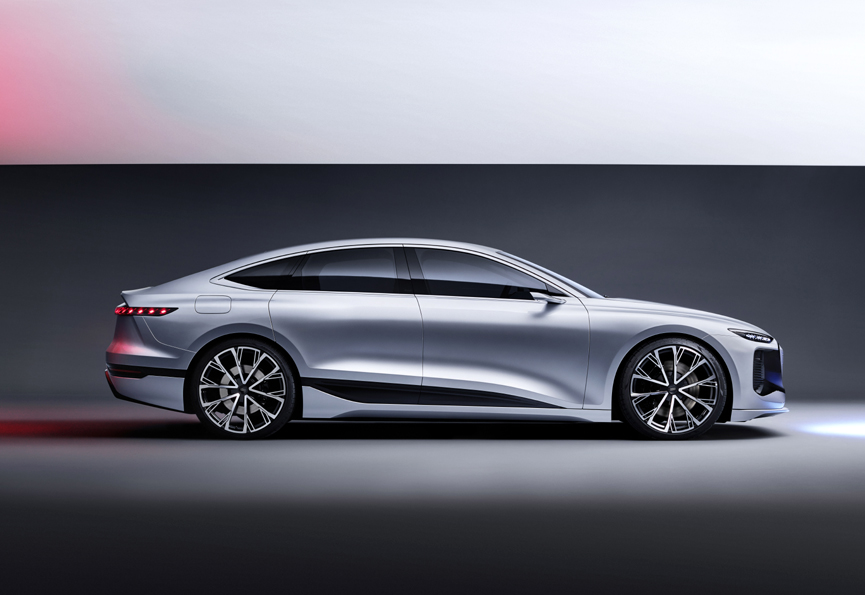 Sporting the Audi A6 emblem, the concept car underscores its place in the brand’s luxury-class model series. This model has represented the brand in one of the world’s highest-volume segments since 1968 – initially, and until 1994, as the Audi 100. First the Sedan, Avant, and allroad, then later the Sportback – which was introduced as the A7 – rounded out the model family. An electrified drive system already has a long tradition in the Audi A6 – after a full hybrid version that was released back in 2011, the current Audi A6 TFSI e made its debut in 2019 with a plug-in hybrid drive and an electric range of up to 91 kilometers (WLTP).
