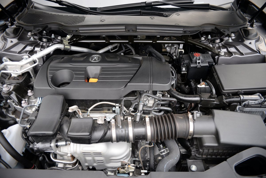 In addition to the performance niceties of the A-Spec package, Acura also includes a vibrant ELS Studio 3D premium audio system with no less than 17 speakers. While this concert hall of sound can be used to drown out the mechanical whine of the TLX' potent turbo motor, I chose to keep the ELS system muted in favor of the mechanical symphony provided by the turbocharged 2.0 liter four which cranks out 272hp at a shrill 6500rpm. This engine connects to all four wheels through a 10-speed automatic transmission equipped with paddle shifters. You can play those shifters like a concert pianist since you have enough gears to perform a complete concerto. Amazingly, the top four gears (7th, 8th, 9th, and 10th) are all overdrive gears, with 6th gear being the only gear set in the transmission offering direct drive (1:1). Final Drive ratio for this complex transmission is 3.59:1, so the TLX has plenty of grunt off the line - enough to cut a 0-60 mph time of 5.9 seconds, and a quarter mile sprint of 14.5 seconds at 97mph. Top speed is 131mph.