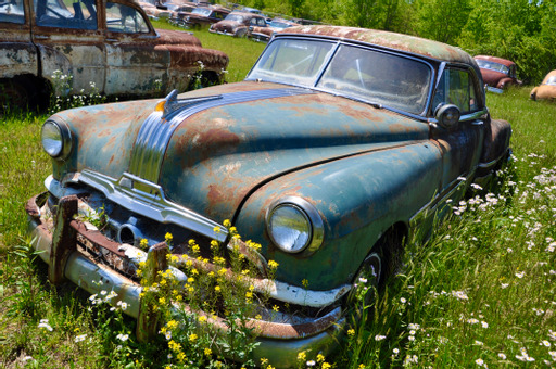 J.C. Lane gathered these cars over the past six or seven decades at the corner of US127 and Stephen’s Loop Road in middle Tennessee. After trying his hand at a variety of ways to make a living he finally settled on establishing a junk yard in this rural setting. Or, should we call it a salvage yard? Or was it always a collection? Mr. Lane, now well over 90, had always specialized in cars from the forties, fifties, and sixties, an exuberant age of American auto design. He made a good living at it and still sells some stuff. It appears he saved some of the best for himself, his family, and posterity.