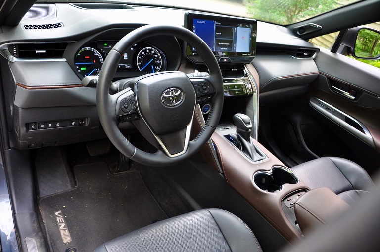 Back onto I-75 we barrel on to our next stop about five hours south, just into Tennessee. The Venza keeps up with the fast-moving, intermittently heavy traffic through Cinci and all the way through Kentucky. This new Venza comes only with a hybrid powertrain and all-wheel drive. Toyota, after all, pioneered mainstream hybrids and the efficiency of this one shows it. It’s mighty quick off the line or onto the entrance ramp, but a bit tepid from 60 to 80 mph. The 2.5-liter four-cylinder gasoline engine and hybrid power system add up to just 219 horsepower, not a lot by today’s standards but plenty for the Venza target audience. The ultra-efficient CVT (continuously variable transmission) offers a manual mode with six speeds programmed in by the software magicians so you can have the feel of conventional gearing . . . sometimes. On acceleration without engaging manual mode it still feels and sounds like a CVT.